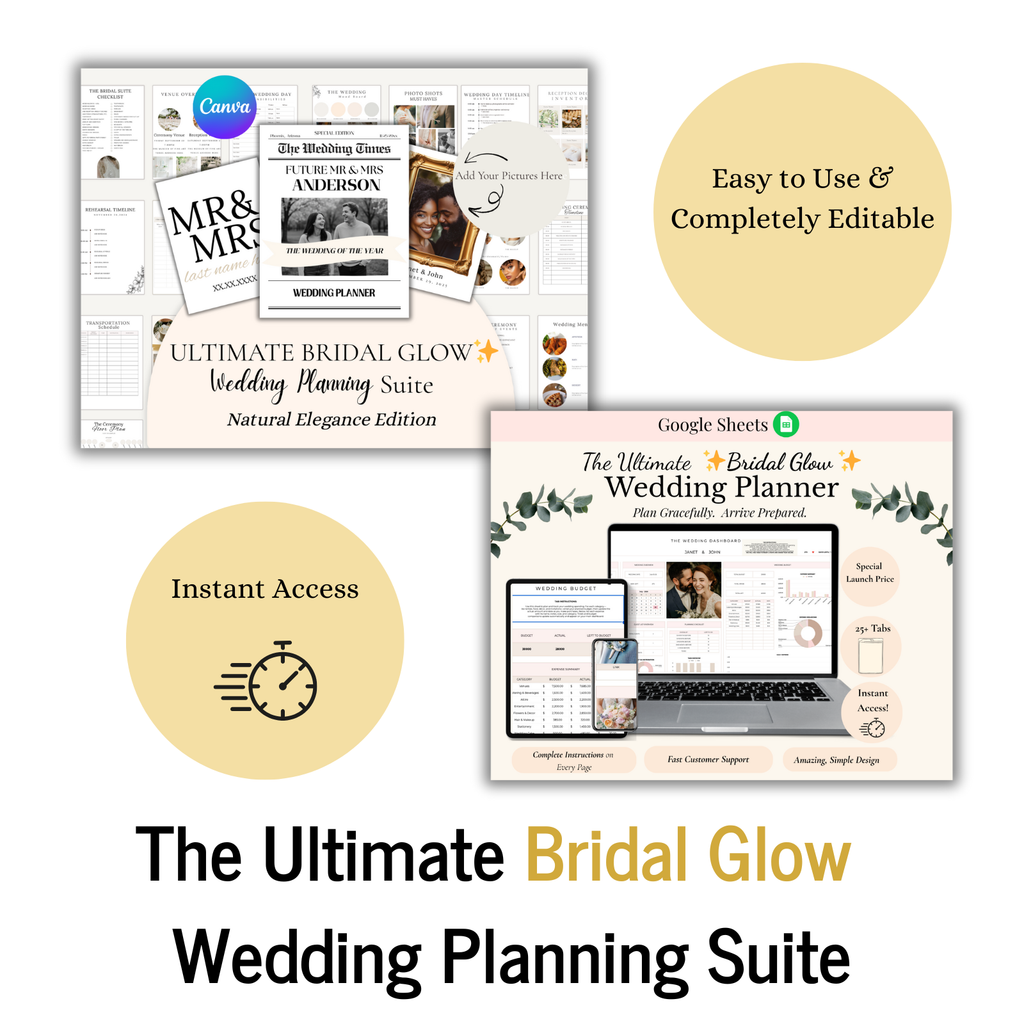 Get your FREE Mini Bridal Glow Wedding Planner with Checklists + Worksheets AND the 8-Day Bridal Glowup Email Series with special, periodic letters along the way. Click HERE.