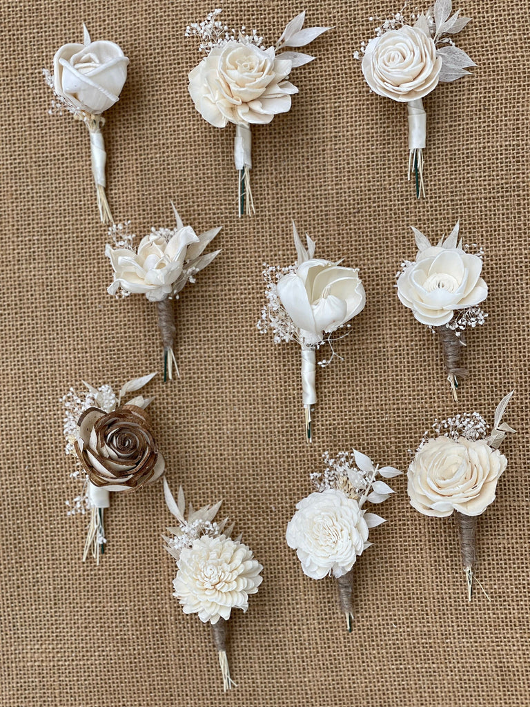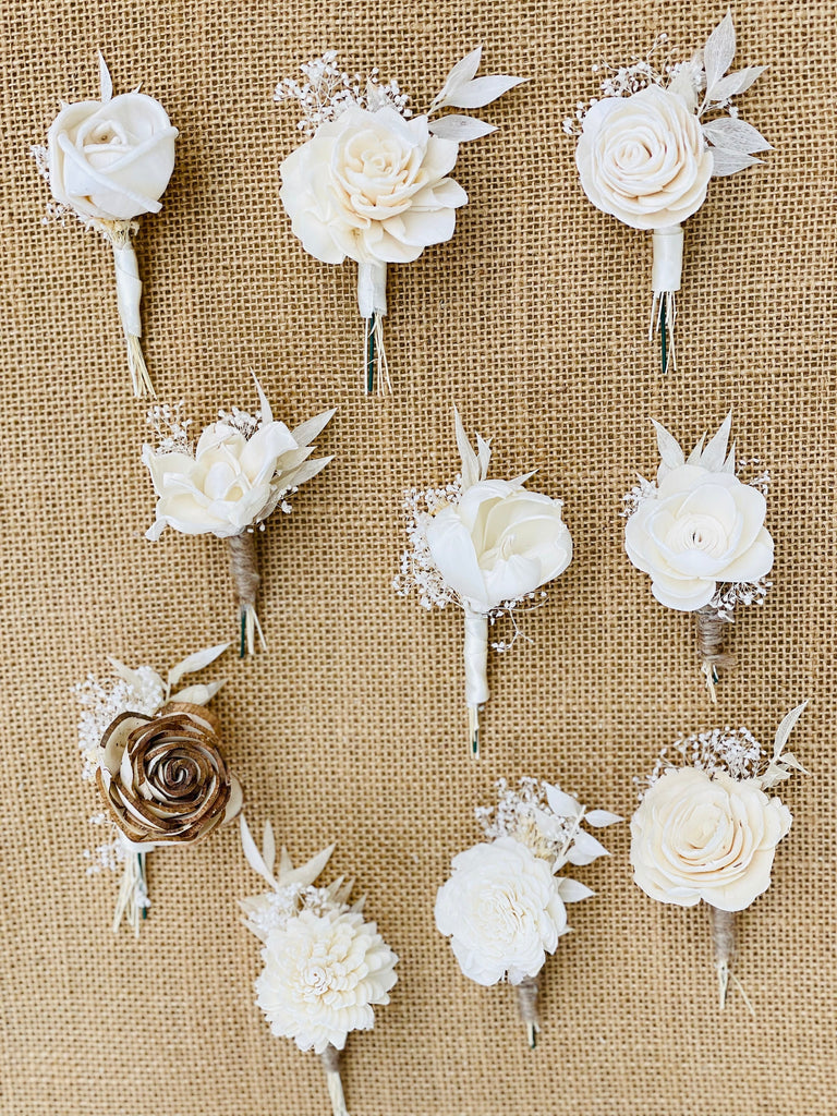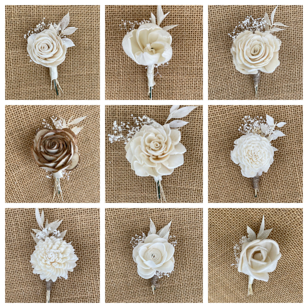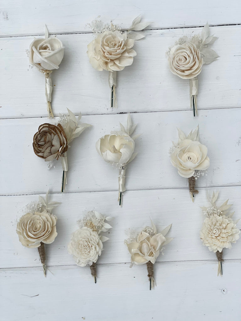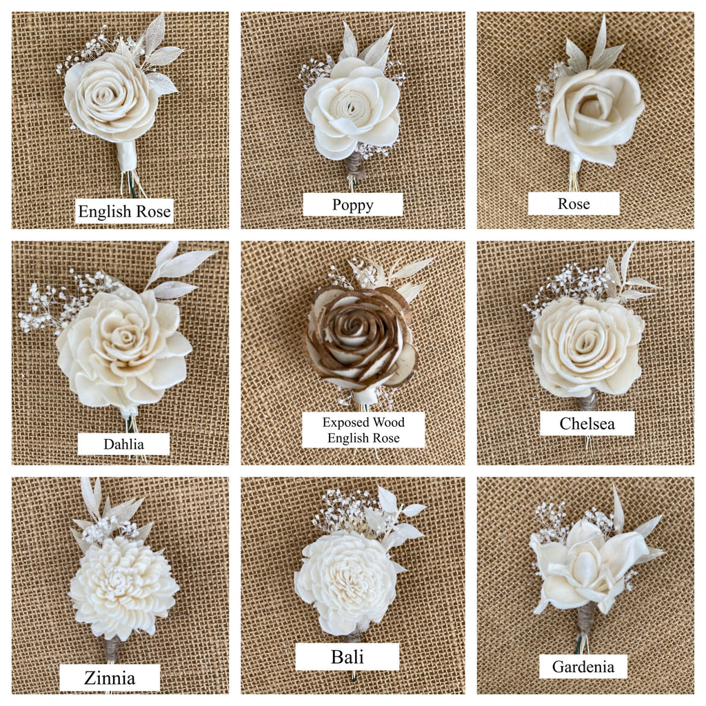 Choose your boutonniere, Sola flowers, wedding flowers, groomsmen, wood flowers