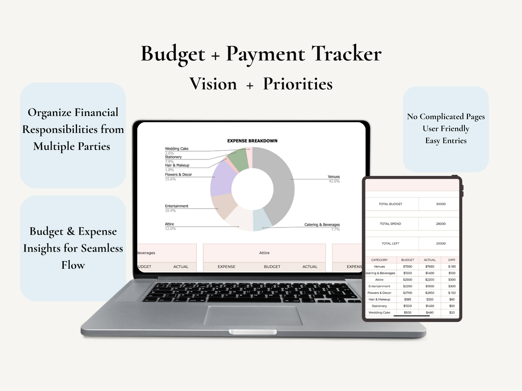 This easy-to-use Google Sheets planner keeps everything together: your budget, guest list, seating chart, timelines, vendors, and more. Easy to follow instructions are included.